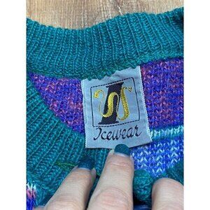 Vintage 80s/90s Pure Wool Cardigan Sweater With Stripe & Tribal Pattern Button-U