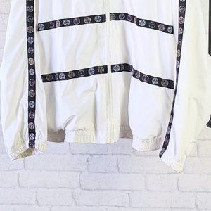 Vintage 80's-90's White Reebok Windbreaker With Aztec Pattern Print. Zip Up. Blue, Black and Purple Color Accents.