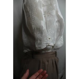 Vintage 80s/90s Reworked White Lace Pleated Top