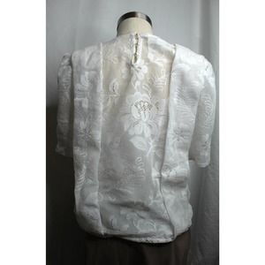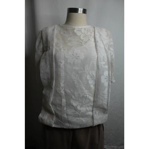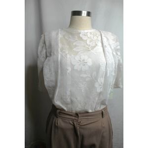 Vintage 1980s or 1990s Byer Too reworked top made from a dress. The lacy top is lined and features puffed sleeves with pearl button closures and pleats. Best fits size Small or Medium. From a cat friendly home.