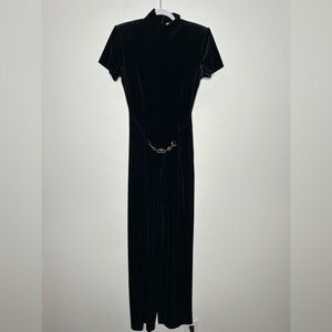 Vintage 80s/90's Victoria Stephens Black Velour Velvet Jumpsuit Silver Belt SZ 6
