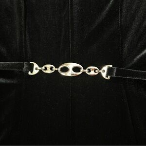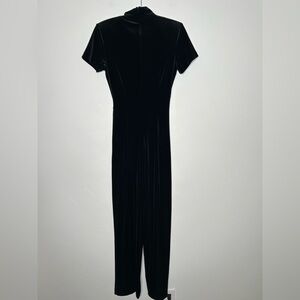 Vintage late 80's early 90's Victoria Stephens Black Velour Velvet Jumpsuit Silver Belt Size 6