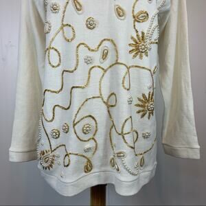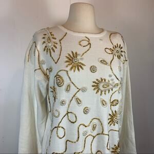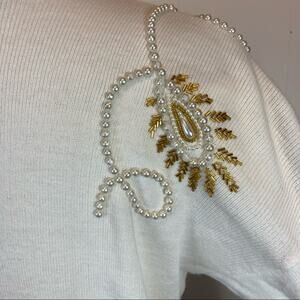 Vintage 80s-90s White Gold Beaded Pearl Embellished Sweater Size Woman's Medium