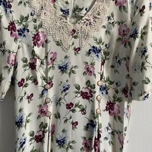 Vintage 80s/90s floral midi dress with lace collar and buttons down the front