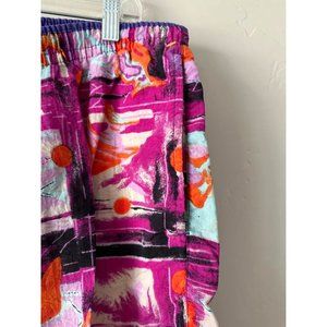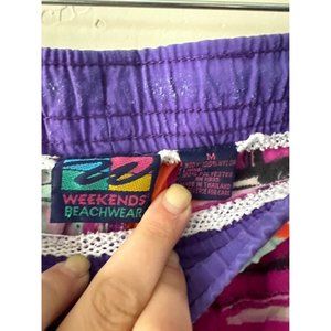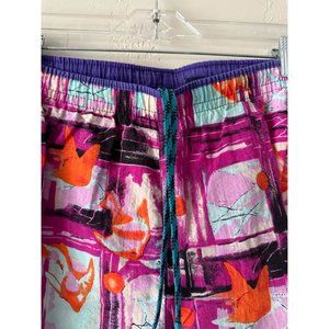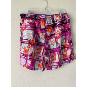 Funky 80s/90s purple orange swim trunks with elastic waist