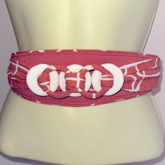 Vintage 80s/90s peachy orange & white layered cloth elastic belt