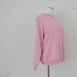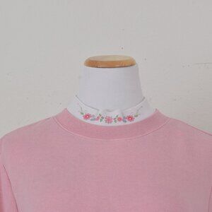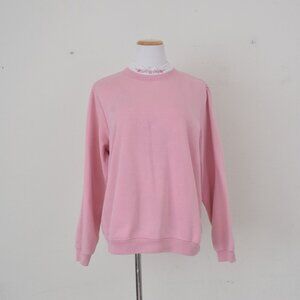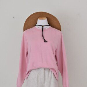 Vintage pullover mock-neck sweatshirt in a pink bubble gum color that has faded a bit. Item in good vintage condition.
