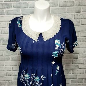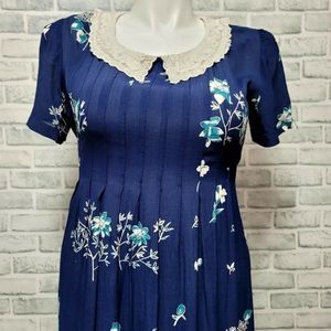 Vintage 80s 90s Karin Stevens Cottagecore Pintucked Crepe Floral Tie Back Midi