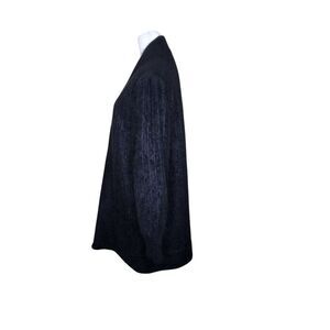 Vintage 80s Angora Rabbit Fuzzy Open Cardigan Jacket Womens S Black