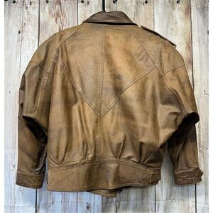 Vintage 80s Brown Leather Indiana Jones Zip Up Biker Bomber Jacket
