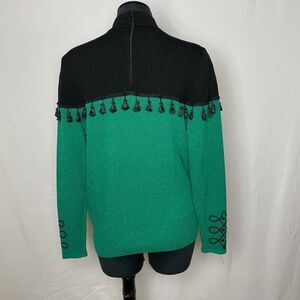 Vintage 1980s Black & Green Tasseled Diane Delorean New York Knit Mock Neck Sweater.