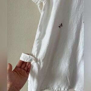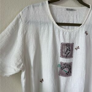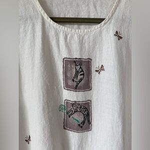 Vintage 80s Focus USA White Linen Top with Cat and Butterfly Print - Women’s M