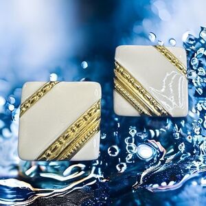 Vintage 80’s Givenchy Gold Tone Cream Beige Enamel Clip Earrings
