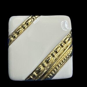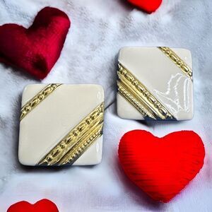 Fantastic huge 1.25” x 1.25” Givenchy gold plated creamy white enamel earrings. Clip back excellent condition. See all photos for details.