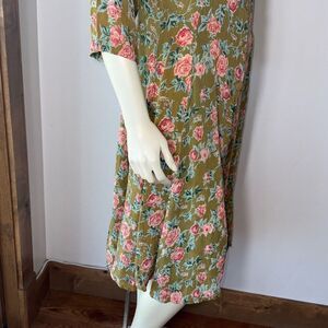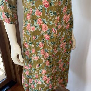 Vintage 80's Green Cottagecore Rose Floral Button Down Maxi Dress Medium