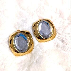 Large Clear Rhinestone and Goldtone Clip Earrings
