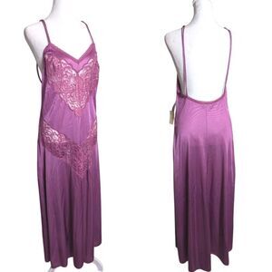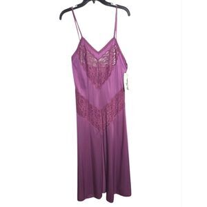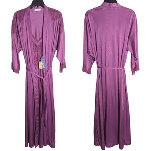 Vintage 80s Miss Elaine Purple Lace Nightgown Chemise & Robe Lingerie Set M