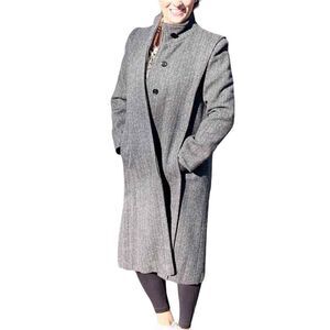 Vintage 80s Projections 100% Wool Long Grey Button Front Coat Women’s Siz Medium