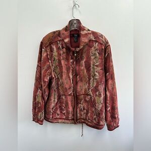 Vintage 80’s Red 100% Silk Reptile Print Windbreaker Jacket Size XL