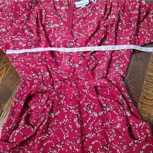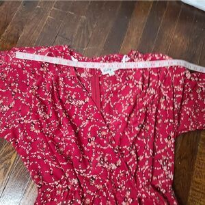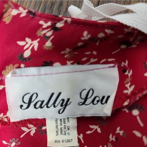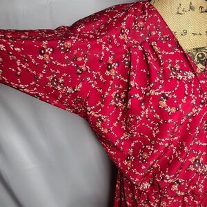 Vintage 80s Red Dainty Floral Cottagecore Deep V-Neck Midi Dress