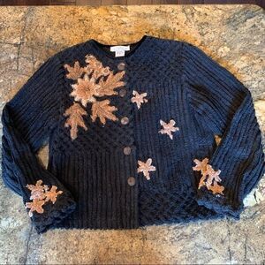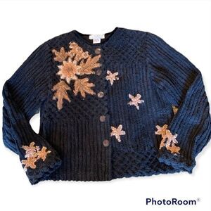 Vintage 80’s Sandy Starkman Chenille Button Up Black Embroidered Starfish Jacket