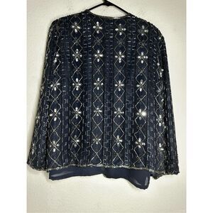 Vintage 80sSet of 2 Scala Blue Navy Silk Sequins Beaded Jacket+Top Size M *Note