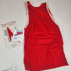 Vintage 80s Speedo Red Nylon Tank Top White Trim Womens XS