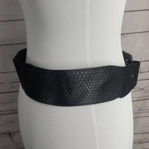 Vintage 80s Style Wide Black faux snakeskin Waist Belt