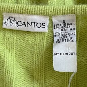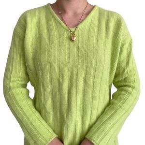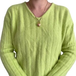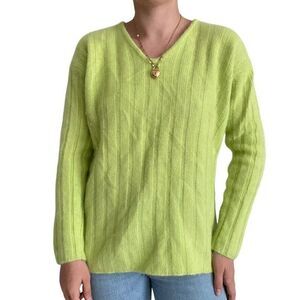 Vintage 80s Womens Gantos Soft Angora Lime Neon Green Ribbed V Neck Sweater