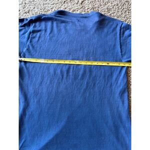 Vintage ‘82 Port Jefferson Distressed Thrashed M Faded Navy Single Stitched Tee. For the thrashed and distressed lover looking for that perfect faded navy top to match those worn out double knees canvas pants. Holes and fading throughout. Perfect thrashed condition!