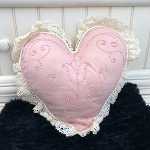 Vintage (85) Cathy Needlecraft Hand Embroidered Pink Heart Cottagecore Country