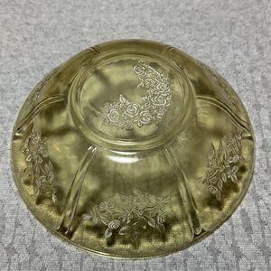 Vintage 8.5" Yellow Depression Glass Serving Bowl Sharon Cabbage Rose Design