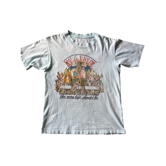 Vintage ‘89 Maine Vacation Land Moose L Single Stitched Faded Aqua T-Shirt