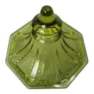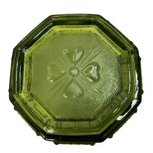 Vintage 8-Sided Imperial Butterpat Glass Candy Dish w/ Lid Birds & Hearts Green