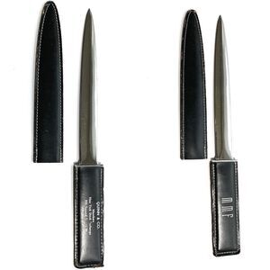 Vintage Advertising 9" Letter Opener Black Bonded Leather Sheath 2-Sided Handle