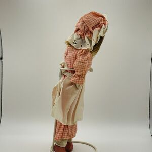 Vintage 9" Porcelain Doll Bendable Limbs Checkered Dress With Matching Bonnet