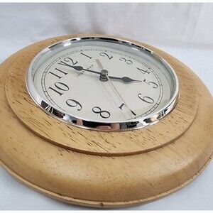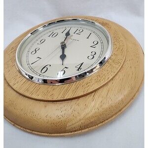 Vintage 9" Round Ingraham Wall Clock Quartz Brown Wood Frame