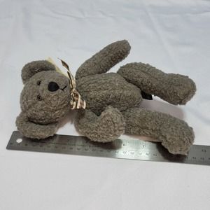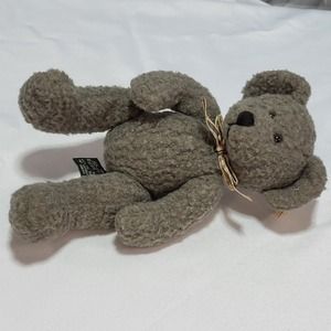 Vintage 9" Russ Teddy Bear Stuffed Plush “Frizzlin” Grey Fleece w. Checkered Bow