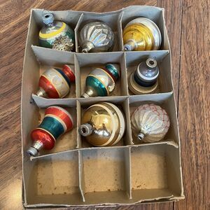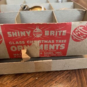 Vintage 9 Shiny Brite+ Glass Mica CHRISTMAS Ornaments In Box