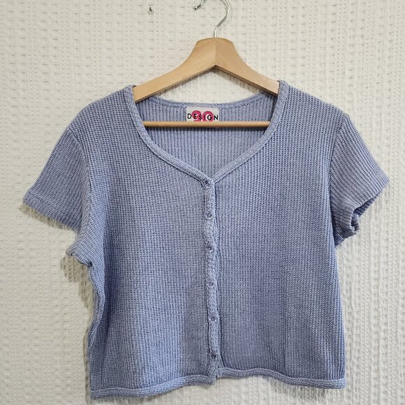 Vintage 90 Design Periwinkle Square Knit Button Front Top Size Small