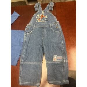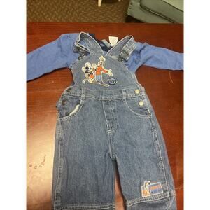 Vintage 90 Disney Mickey Mouse & Friends Embroidered Overalls & Shirt 2T