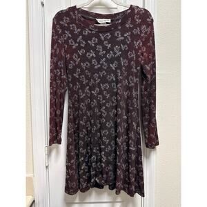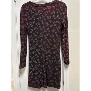 Vintage 90 Red Brown Stretch Knit ALine Rhinestone Rose Print Mini Dress Size 2