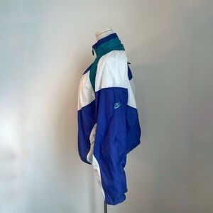 Vintage 90’s Nike Windbreaker Jacket Women’s Large Teal Blue White Swoosh
