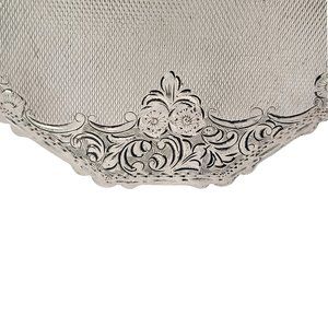 Beautiful etched floral and scroll motif on one side, etched stripes on other side.