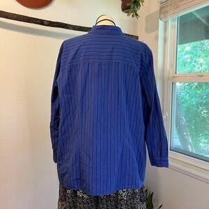 Vintage 90s 100% Cotton Blue Textured Stripe Menswear Oversized Shirt Size 2X
