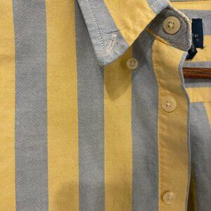 Vintage 90's Cambridge Classics Yellow & Blue Striped Button Down, 100% Cotton, Size M, Used - Fair Condition