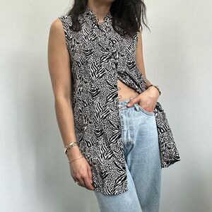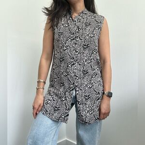 Vintage 90's 100% Silk Zebra Print Button Front Tunic Shirt Sleeveless Size S