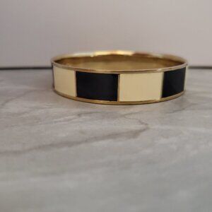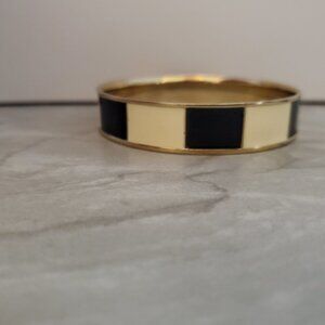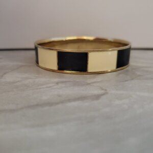 💕 Vintage 90s 1990s J.Crew Black Cream Striped Enamel Bangle Bracelet 💕