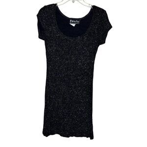 Vintage 90s 1990s Y2K 2000s all that jazz 90s black sparkle Glitter Knit Mini Dress short sleeves witch witchy vibes whimsigoth Party dress Christmas