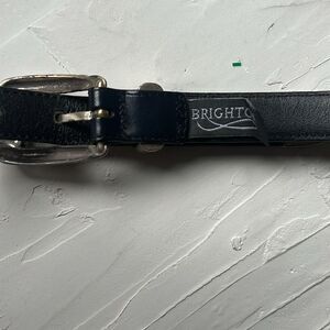 Size Small Vintage Belt Brand Brighton Leather in great condition for age, 90's era genuine leather and sterling silver. Size Small, no scratches on the leather, a few minor markings on silver belt buckle, although adds to the vintage charm